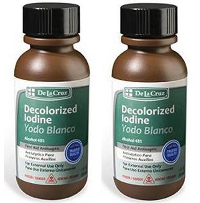 -. Binding : Health and Beauty -. Brand : De La Cruz -. Feature : It is just as the orange-brown iodine, de-colorized or white iodine is used in a variety of ways. / The most popular is as an antiseptic applied topically. / decolorized or white iodine is used as a treatment for alopecia areata, a condition associated with hair loss, use it topically of course. / Just place two to three drops of white iodine on a cotton ball and apply to cuts and burns to ward off infection. / It is also used for improving appearance of nails.weak, brittle fingernails. -. Label : De La Cruz -. LegalDisclaimer : Actual product packaging and materials may contain more and different information than what is shown on our website. We recommend that you do not rely solely on the information presented and that you always read labels, warnings, and directions before using or consuming a product. -. Manufacturer : De La Cruz -. MPN : F:LR1..226521#YodoDeclrzdIodine1Oz-P -. PartNumber : F:LR1..226521#YodoDeclrzdIodine1Oz-P -. ProductGroup : Health and Beauty -. ProductTypeName : HEALTH_PERSONAL_CARE -. Publisher : De La Cruz -. Studio : De La Cruz -. Title : Decolorized Iodine - White Iodine - Yodo Blanco 1 Fl Oz Decolorized Iodine is a good First Aid Antiseptic.