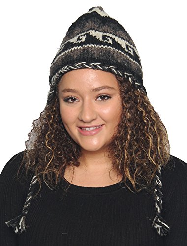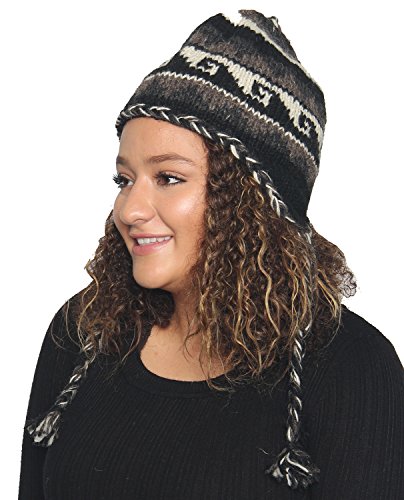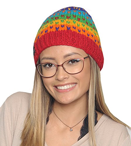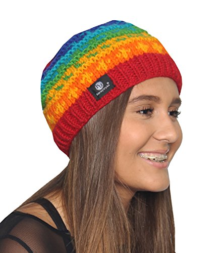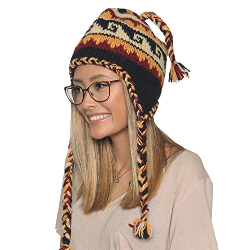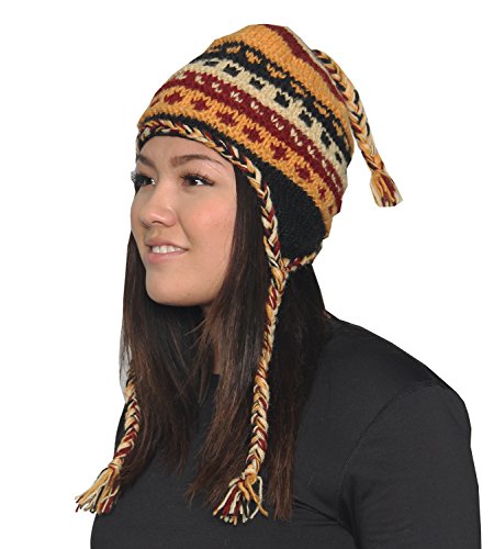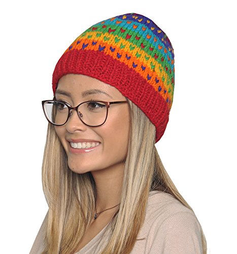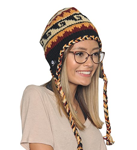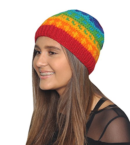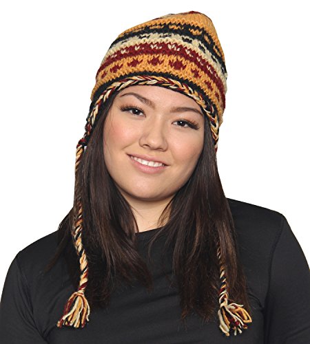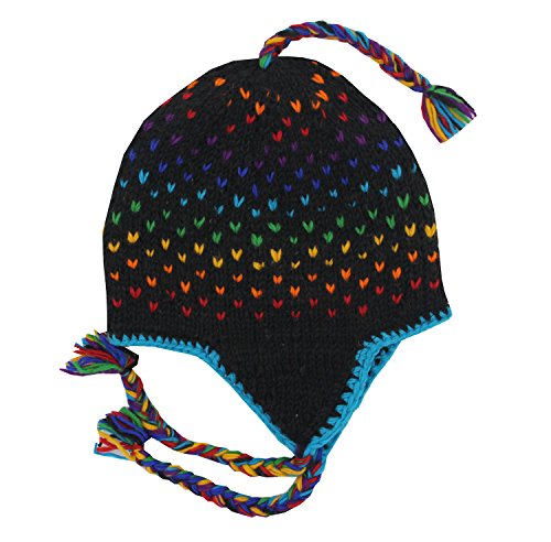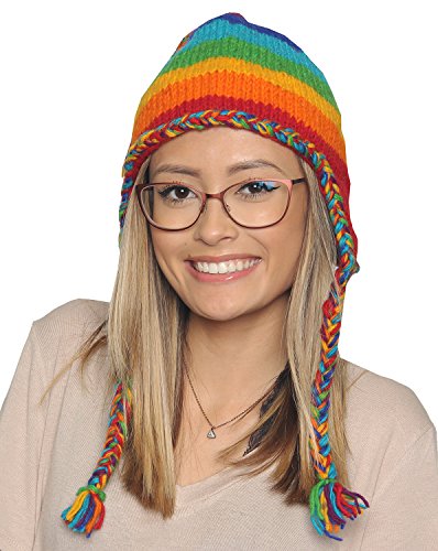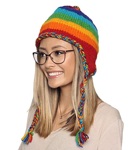 KayJayStyles Nepal Hand Knit Ear Flaps Beanie Ski Wool Fleeced Rainbow Hat