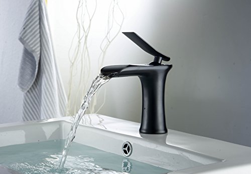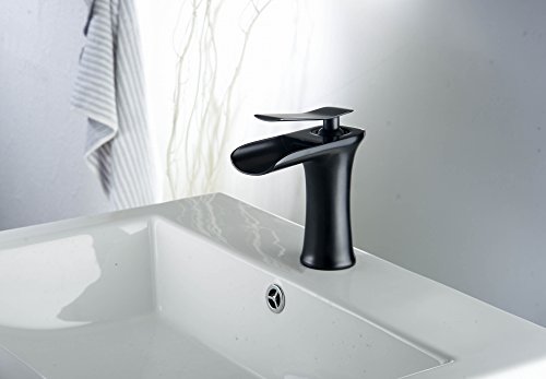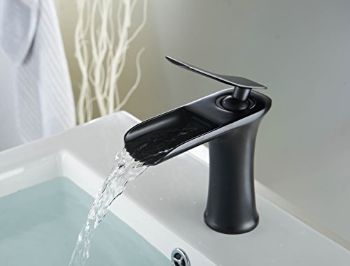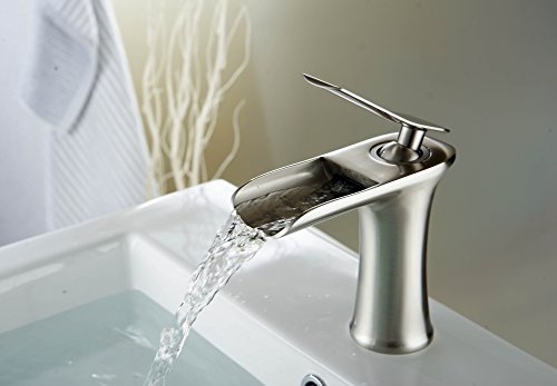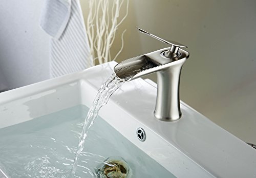 -. Title : Aquafaucet Waterfall Spout Single Handle Bathroom Sink Faucet Basin Mixer Tap Open Channel Spout Brushed Nickel