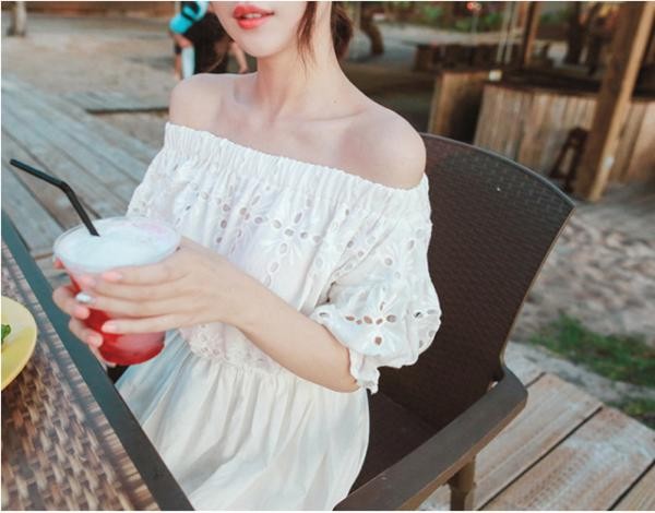 総レース オフショルダー ロング  マキシワンピース ビーチドレス