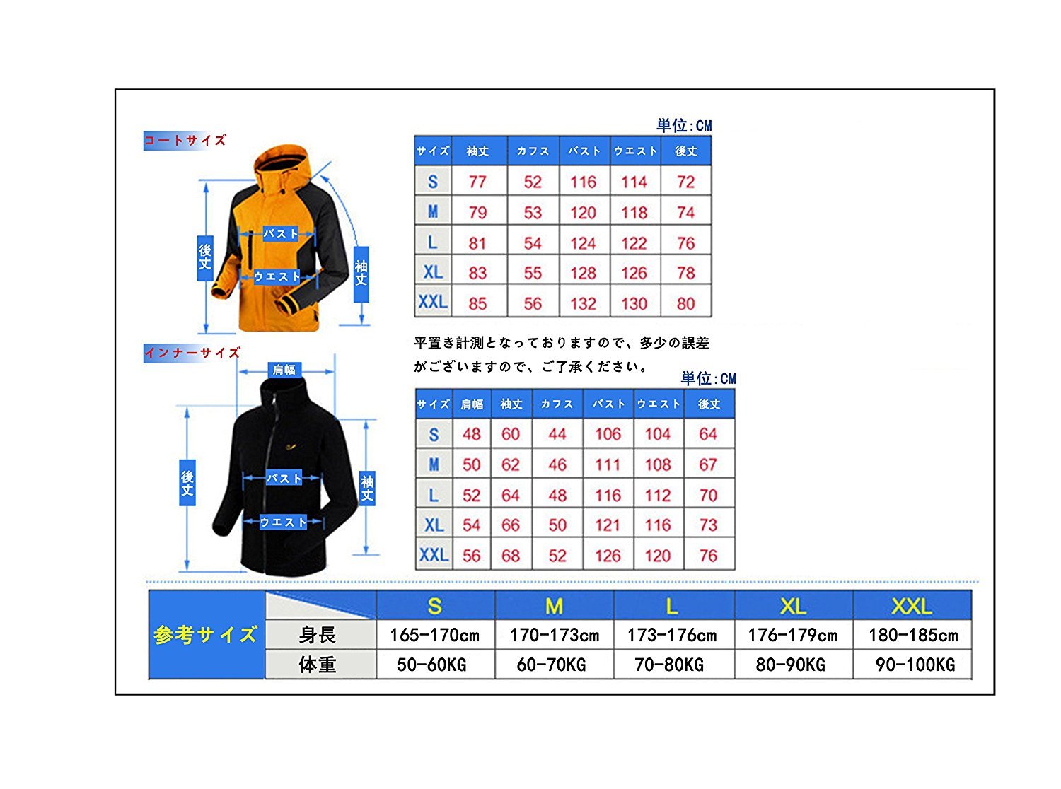 Reference size chart (※ ± error 2-3 cm)