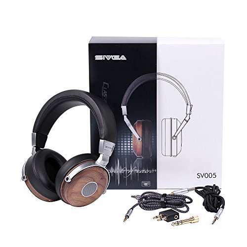 SIVGA Wood Open Back Wired Over Ear Stereo Headphones with Mic and Volume Control, HiFi Wooden Headset with Comfortable Ear Cushion and Unique Wood Grain, SV005 Walnut Wood