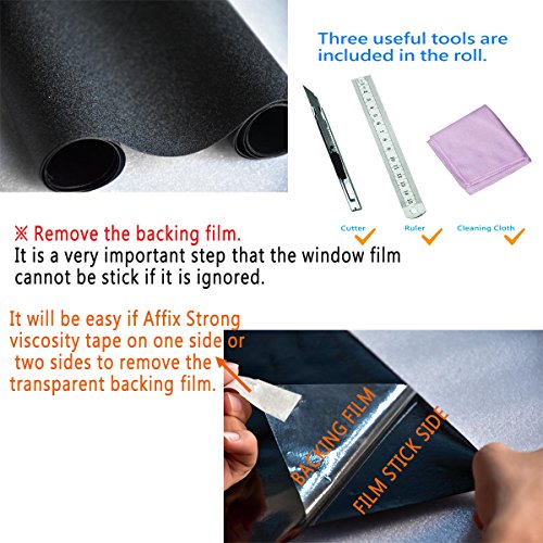 ✓ FREE TOOLS AND EASY INSTALLATION GUIDE INSIDE PACKAGE: To make installation DIY-friendly. Please Make sure window surface is completely clean and absolutely free of any blemishes, and tear off the outside protection film before you post the privacy window film on the smooth surface. Easy to cut into any size to meet your special demands.