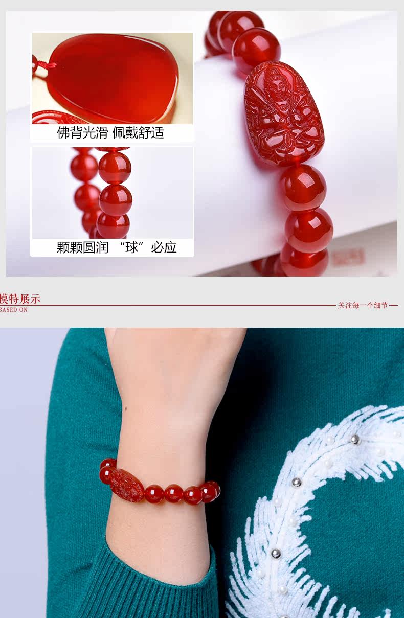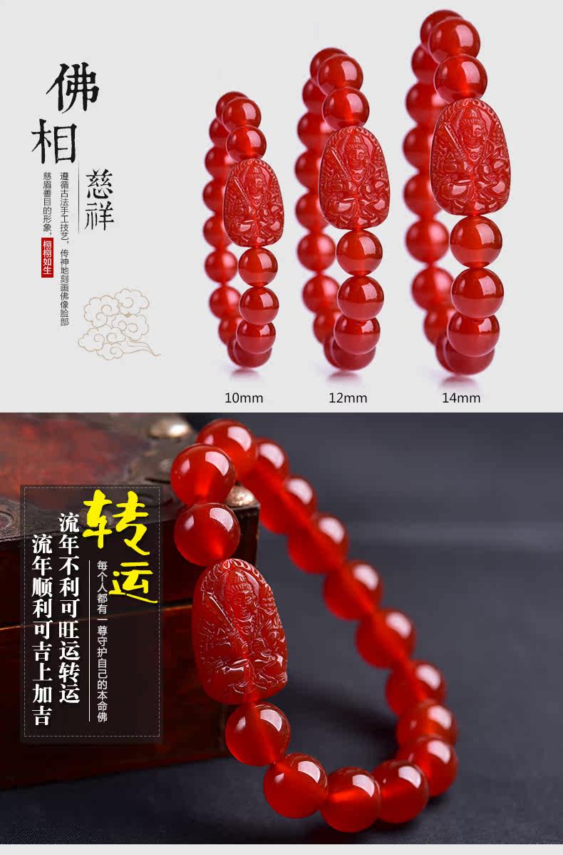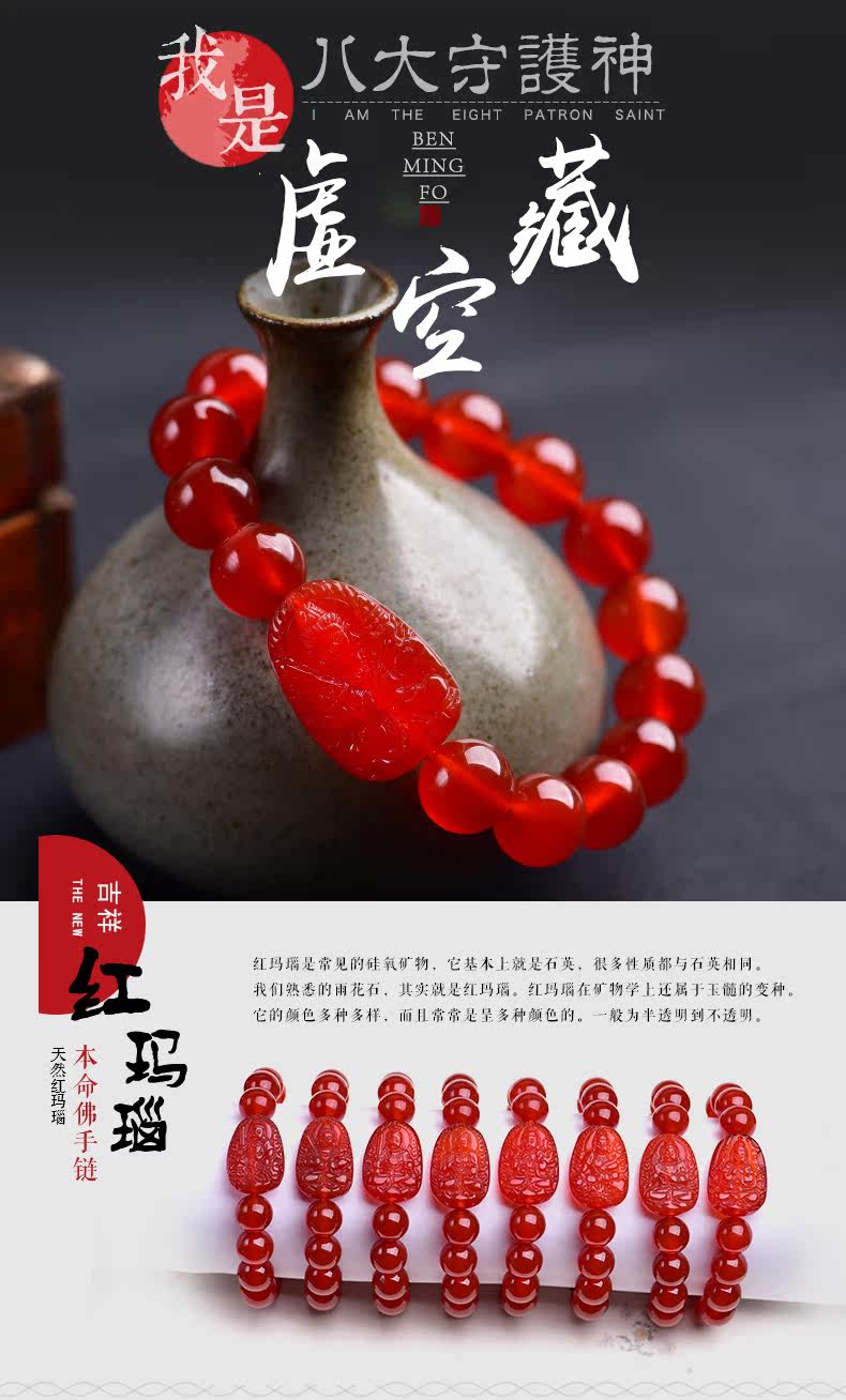 开光天然红玛瑙本命佛手链 虚空藏菩萨生肖属牛虎守护神男女手串