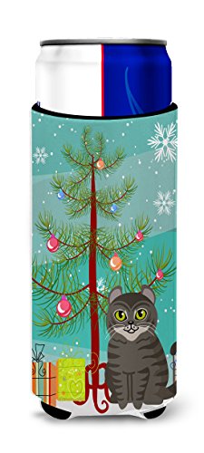 Caroline's Treasures American Curl Cat Merry Christmas Tree Michelob Ultra Hugger For Slim Cans, Slim Can, Multicolor