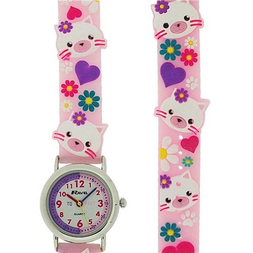 -. Title : Ravel Girls-Kids 3D My Little Kitten Time Teacher White Dial Watch R1513.66