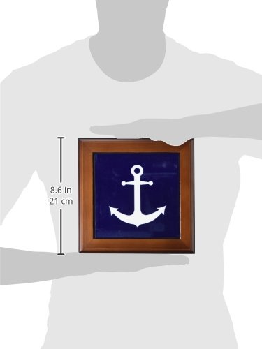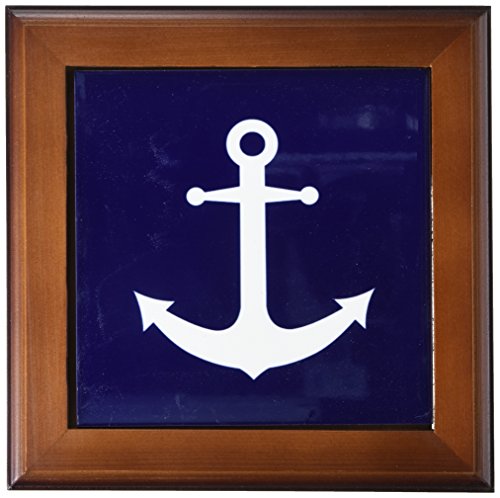 3dRose ft_165798_1 Nautical Anchor Design Framed Tile, 8 by 8-Inch, Navy Blue/White