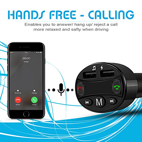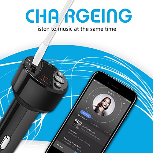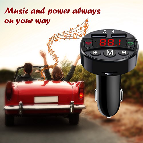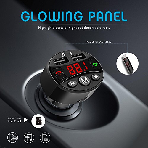- [Universal Compatibility]This FM transmitter works with all smartphones, iPhone, iPad, iPod, Tablet and much more devices, it works with Miro SD/TF card and U-DISK Great Sound for Phone calls and Music streaming to your car stereo using Bluetooth.