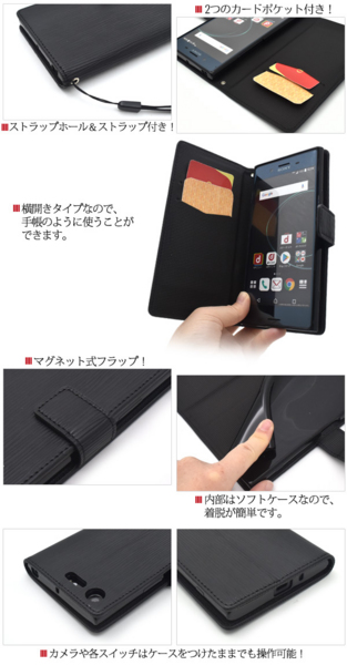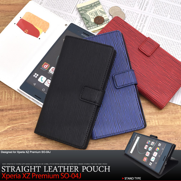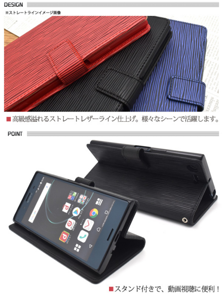 高級感あふれるストレートレザーデザインの手帳型ケース。