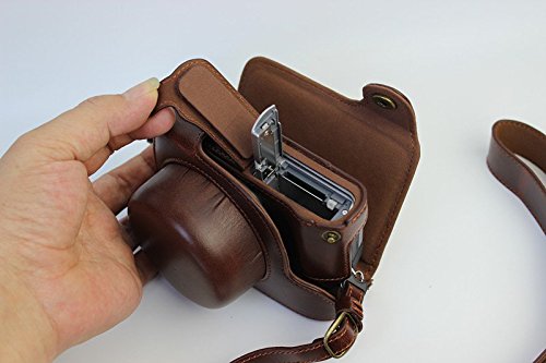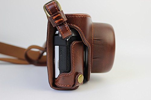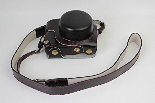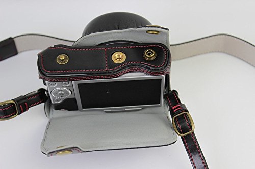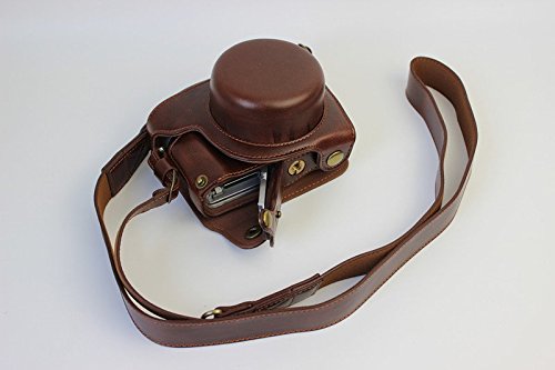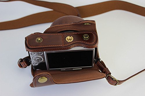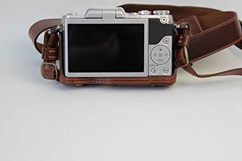 MoreGift4U Voller Schutz Bodenoffnung Version Schutz-PU-Leder Kamera Tasche mit Stativ-Design-kompatibel fur Panasonic LUMIX G DMC-GF7K GF7 mit Schulter-Ansatz-Bugel-Gurt