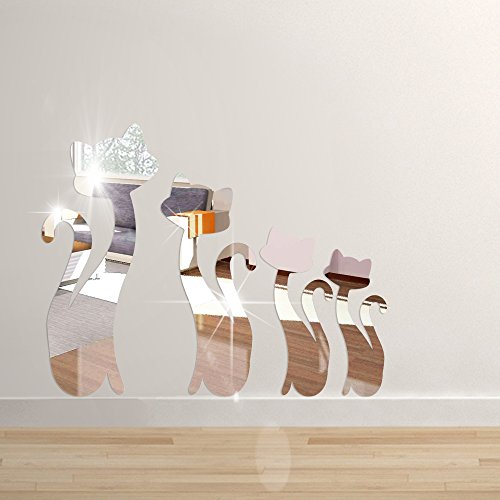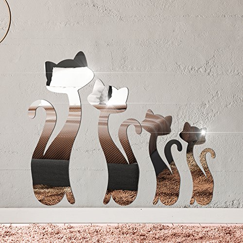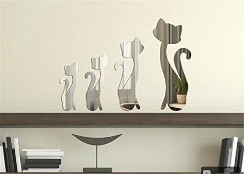 Himerus Modern Acrylic Mirror Wall Decoration Silver Tone Cute Cat Kitty Sticker for Children Boys Girls Bedroom Living Room Nursery
