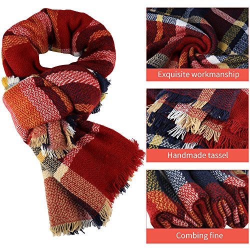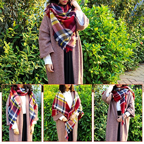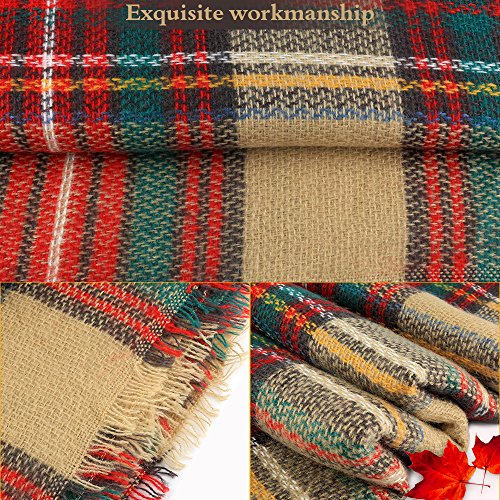 Easy to Dress Up Shawl Scarf -- Easy to wearing and pair with other clothes,tassel and plaid, fashionable and stylish. -- The Large Size Square Scarf makes it possible to be folded and worn as an infinity scarf, triangle scarf, hankerchief, poncho wrap shawl, womens cape, ladies shawl, winter accessory or just wrap the shawl freely around any outfit. Besides, it can also be used as a picnic blanket during fall activities to meet your different demands.