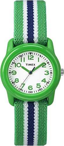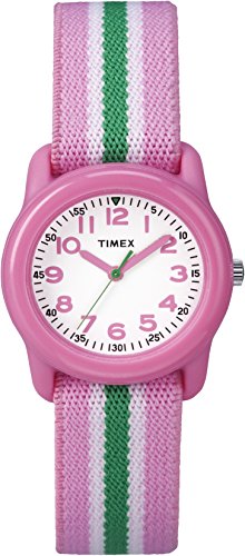 Round resin watch featuring multi-colored numeral hour markers on white logoed dial