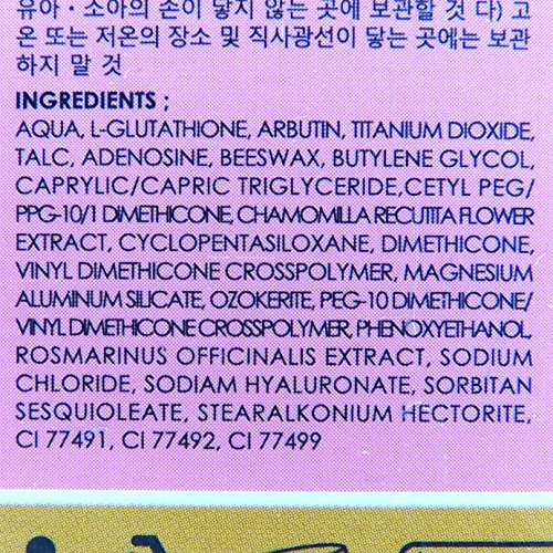-. Feature : Moisturizes dry skin / Conceals and minimizes spots and blemishes / Highly efficient UV protection / Brightens dull skin / Waterproof sunscreen SPF 50