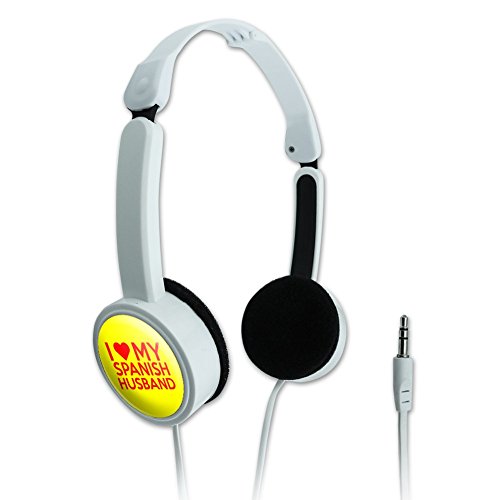 -. Binding : Electronics -. Brand : Graphics and More -. Color : white -. Feature : Enjoy your audio entertainment on the go with these lightweight on-ear headphones. These compact novelty headphones feature a folding design for ease of travel, while the plastic headphone housing avoids adding unnecessary weight to your gym bag or purse. / The ear pieces are cushioned for comfort, and the adjustable head band size makes them appropriate for youngsters and adults alike. / The decorative graphic on the exterior of the ear pieces is printed on high-quality vinyl, and resin-topped, to avoid fading or scratching. / A fun shout-out to your wonderful husband. / A Graphics and More product. -. Label : Graphics and More -. Manufacturer : Graphics and More -. MPN : HPHONE.WHT.Z000813 -. NumberOfItems : 1 -. PackageQuantity : 1 -. PartNumber : HPHONE.WHT.Z000813 -. ProductGroup : CE -. ProductTypeName : CONSUMER_ELECTRONICS -. Publisher : Graphics and More -. Studio : Graphics and More -. Title : I Love My Spanish Husband Novelty Travel Portable On-Ear Foldable Headphones