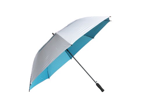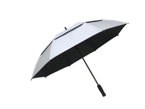 ReleaseDate : 2012-02-07 Studio : RainStoppers Publisher : RainStoppers Binding : Sports Product Description This RainStoppers 62" Auto Open, Windbuster, golf umbrella is constructed with fiberglass shaft and ribs for maximum stability. Silver outer canopy with colored under canopy make this umbrella stand out from the rest. Windbuster technology allows wind to pass through the umbrella canopy in high wind situations. Auto open feature makes it easy to open this umbrella with one hand. At 62" this umbrella is large enough to cover at least two adults. Canopy is silver coated 190T Pongee fabric. Complete with a non slip foam rubber handle. Matching silver sleeve with strap included. Length when closed is 37". 0