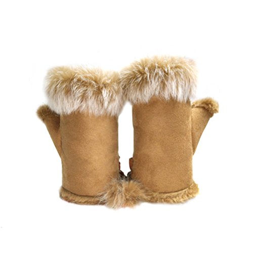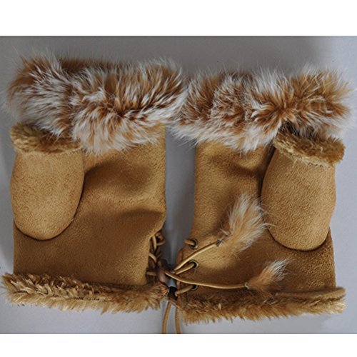 Package Including 1 x Pair Womens Girls Half Finger Gloves Winter Warm Mittens Fingerless Wrist Short Gloves Hand Warmer Costume Christmas Gift (Khaki) 0