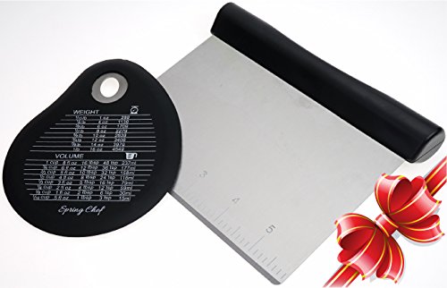 BONUS BOWL SCRAPER - Get every last bit of dough or batter from your bowl with the handy included bowl scraper. Also has a convenient measurement conversion chart printed on the surface for quick reference any time. Scrape flat surfaces with the dough scraper and scrape curved surfaces with the bonus bowl scraper. This dymanic duo will soon become an essential part of your kitchen.