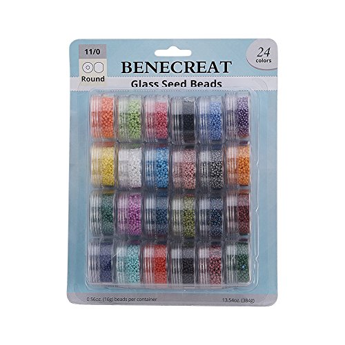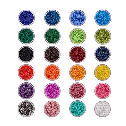 BENECREAT 1 Pack 24 Color 11/0 Round Glass Seed Beads Sets Size 2x1.5mm with Individual Boxes Assortment