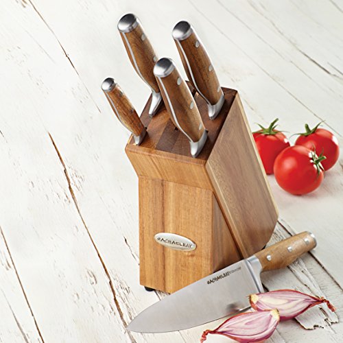 RACHAEL RAY CUCINA CUTLERY 6-PIECE JAPANESE STAINLESS STEEL KNIFE BLOCK SET WITH ACACIA HANDLES