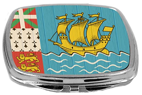 Rikki Knight Compact Mirror on Distressed Wood Design, Saint Pierre and Miquelon Flag, 3 Ounce