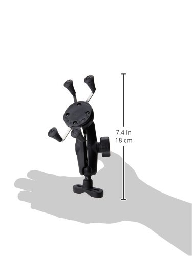The RAM-B-149Z-UN7U consists of a zinc coated u-bolt base, double socket arm and universal X-Grip™ holder. Designed into the mount is a 1"" diameter patented rubber ball and socket system with adjustment points at the both ends of the socket arm; this with a twist of the arm knob, allows you can move the X-Grip™ mount to your optimum viewing position. Included in this package is hardware that will accommodate rails from 0.50"" to 1.25"" in diameter. The base includes black cover caps to be placed over the exposed ends of the u-bolt. The included composite rail adapter can narrow the rail to a minimum width of 0.5"". The included X-Grip™ cradle has a clean and clever four leg design that sports great holding power without hiding your phone behind foam pads and plastic. The spring loaded X-Grip™ holder expands and contracts, allowing for a perfect custom fit of your cell phone. The perfect compliment to the modern sleek interior of today's vehicles, the RAM X-Grip™ is the cell phone holder evolved.Feature