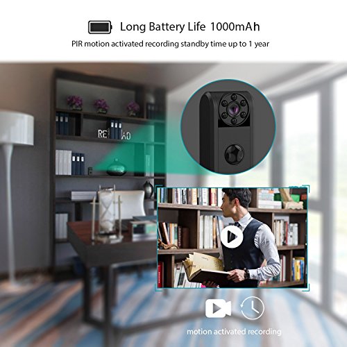 ★Built in Solid 1000mah Battery: It ensures the continous record ,day time video up to 4 hours and night vision video up to 1.5 hours when camera fully charged.Or much longer time if you attach an external power pack