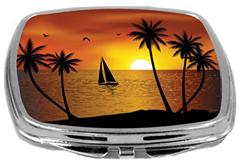 Rikki Knight Compact Mirror, Silhouette Boat Palm Trees On Sunset