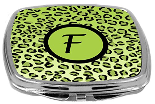 Rikki Knight Compact Mirror, Letter f Initial Lime Green Leopard Print