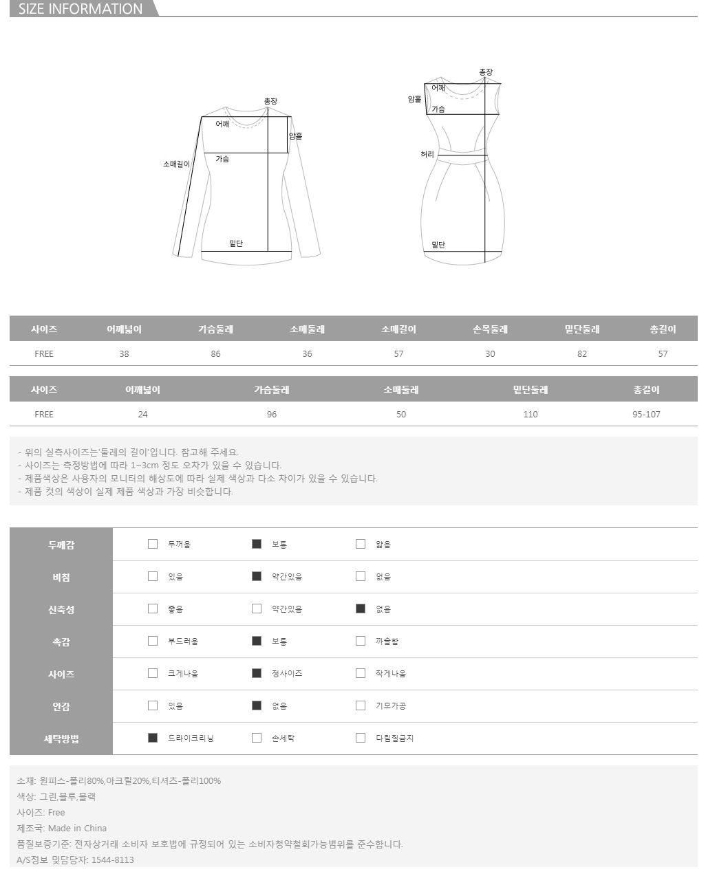 | 특이 사항 | 배송, 변경, 반품 환불에 대한 문의는 위 연락처로 문의 주세요. | ||