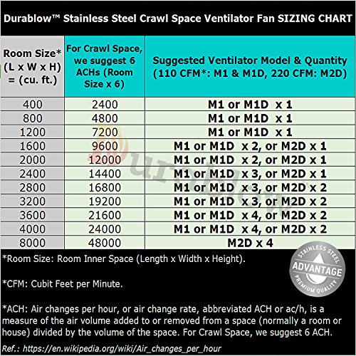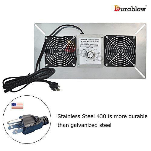 Durablow Stainless Steel 430 Crawl Space Foundation Dual Fans Ventilator + Built-in Dehumidistat, 220 CFM (Model: MFB M2D-S430)