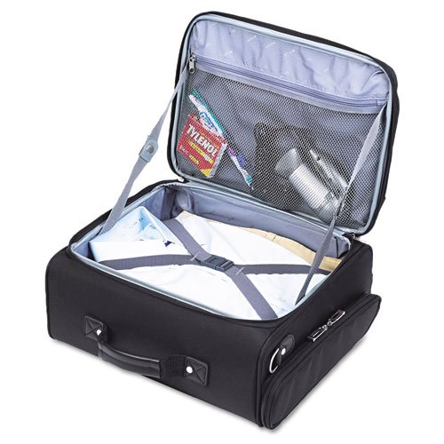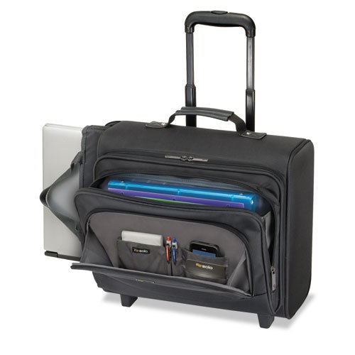 -. Binding : Electronics -. Brand : SOLO -. Color : Black -. Feature : Removable padded sleeve protects laptops up to 15.6". / CheckFast sleeve design allows you to pass through airport security faster. / Front zip-down organizer section. / Front zippered accordion fan file. -. Label : SOLO Products -. Manufacturer : SOLO Products -. MPN : B644 -. PackageQuantity : 1 -. PartNumber : B644 -. ProductGroup : PC Accessory -. ProductTypeName : CARRYING_CASE_OR_BAG -. Publisher : SOLO Products -. SKU : USLB644-SP0912NU -. Studio : SOLO Products -. Title : Solo Rolling Notebook Overnighter Case - Clamshell - 16.5" x 17" x 11" - Ballistic Nylon - Black