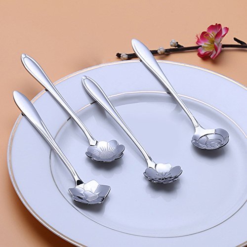 Creative Design:With the creative design,4 kinds of different flower type spoons:Rose,Sunflower,Sakura, Coreopsis,Balloon flower,can be the perfect gift