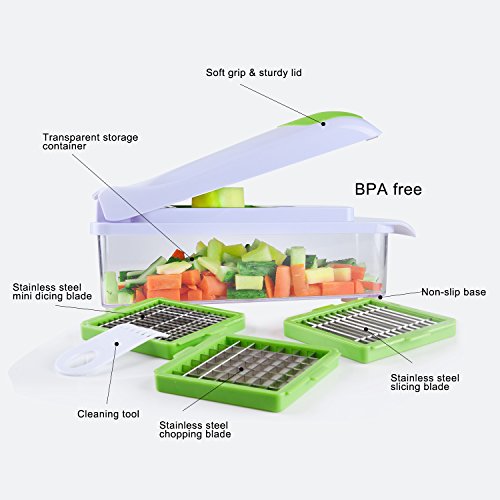 Studio : Cool-Shop Publisher : Cool-Shop Product Description Why Choose Adoric Life Vegetable Chopper? 100 % Safe BPA Free Food-grade ABS lid Food-grade PP container 420J2 stainless steel rust-resistant blades What You Get? 3* Blade Set 1* Food Container with Lid 1* Clean Brush How to Install? 1. Install the blade you required in the slot; 2. Put foods on the blade, press the lid carefully; 3. Take out the clean brush inside the block to clean the residues; 4. Remove the food from the transparent container; 5. Clean and wipe dry the chopper timely when not in use. Please Note: 1. NOT suitable for cutting carrots and other hard vegetables/fruits. 2. If the food is too large or thick, please first cut it into smaller piece of less than 1.6 inches. 3. Beware your fingers when pushing down the lid. 4. When changing the blade, be careful not to cut your hands. 5. Please put it beyond the reach of children.