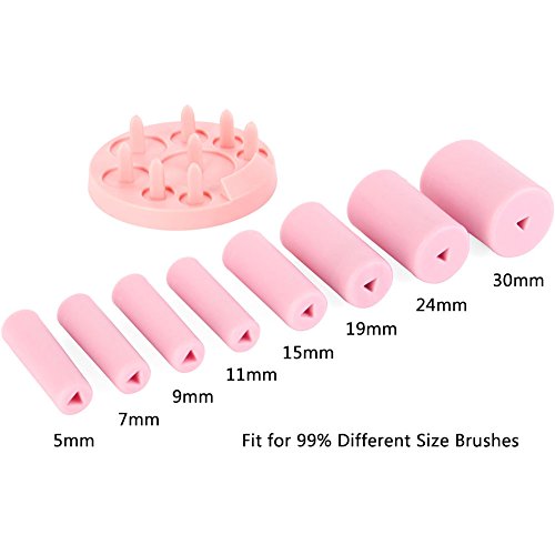 Unique and Sturdy - 90 degree perfect angle and 8 Size rubber collars, suitable for deep thorough cleaning of various facial and eye makeup brushes