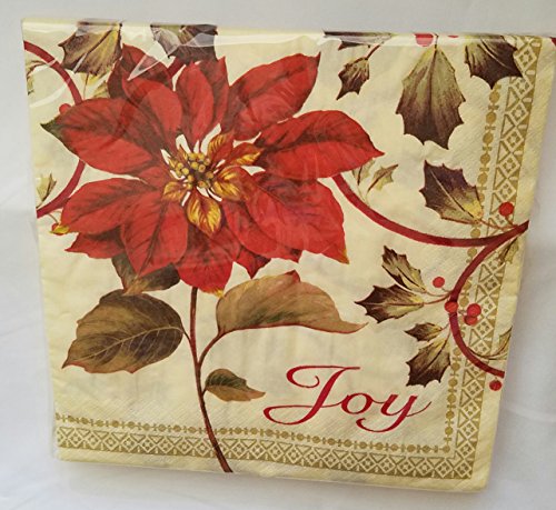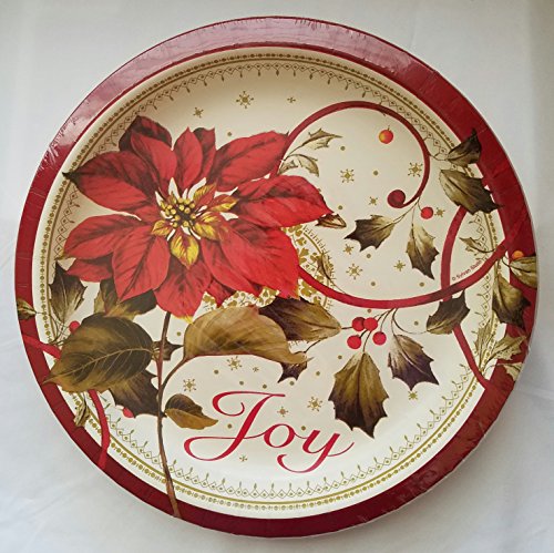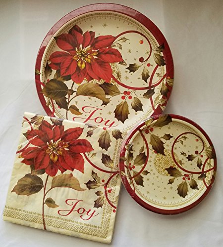 Joyful Poinsettia Christmas Holiday Plates & Napkins Party Kit for 12 Guests: