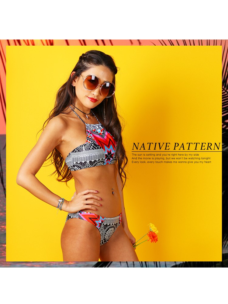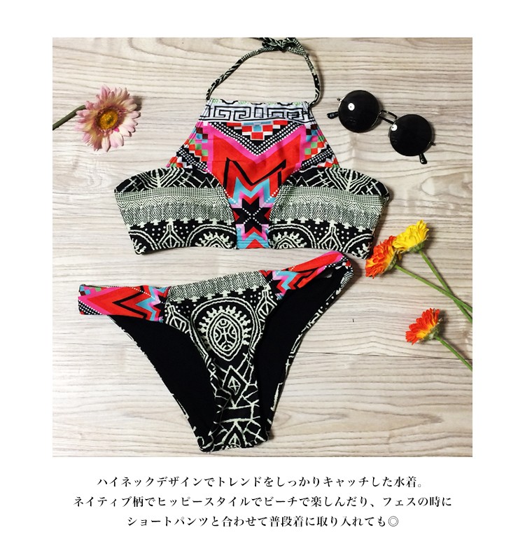 | 商品名 | ネイティブ柄ハイネックビキニ |