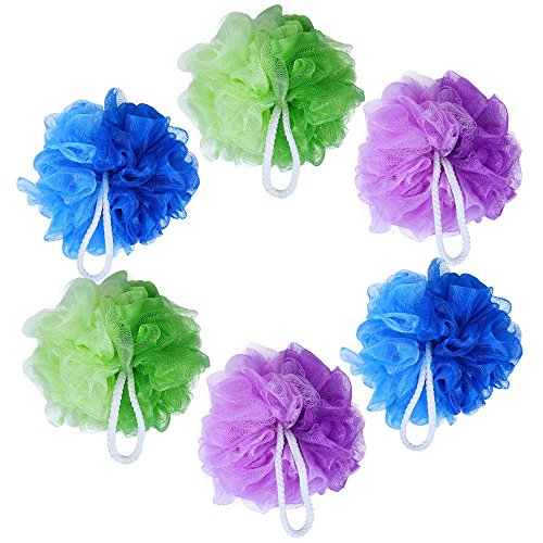 Loofah Bath and Shower Sponge 6-Pack (50g/pcs), Mesh Pouf Exfoliating Bath sponge Body Scrubber Puff