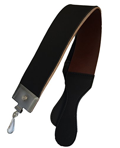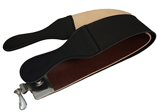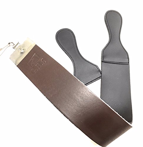 One side is made of leather and other made of fine black leather. Strops are joined by metal reinforced handle with hanging clamp Professional Grade Salon