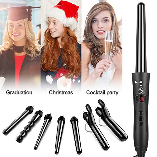 Is your time to show your elegance, cuteness, charm and confidence with Natalie Styx 7 IN 1 CURLING IRON. Got super-curly style? Natural curls? Big Wave? Our curling set designed by 7 Interchangeable Ceramic barrels for all hair types.