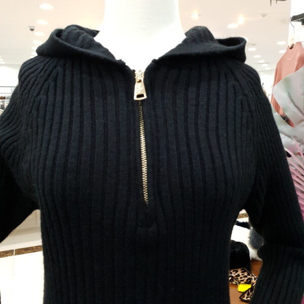 지퍼 골지 후드 원피스예요.슬림핏으로 날씬해 보이는 롱원피스예요.앞 지퍼 포인트와 후드로 캐주얼한 느낌을 주며 골지라인은 여성스러운 분위기를 연출하는 원피스 입니다
