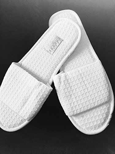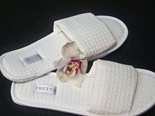 FRETTE White Hotel Collection Open Toe Waffle Weave Spa Slippers, Size 10-12 (Pair)