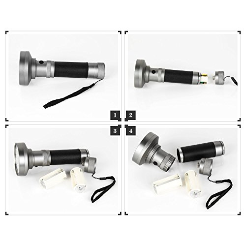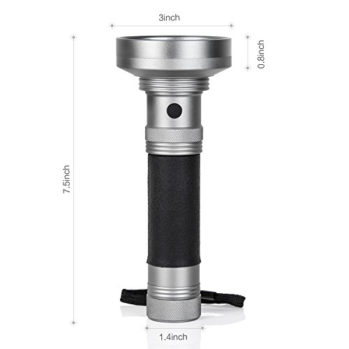 - HEAVY DUTY FLASHLIGHT - Made of aviation aluminum housing with soft PVC rubber handle sleeve and portable strap for wrist wrap or belt loop , waterproof rating at IPX-6, super durable and comfortable hand feeling, perfect for camping, outing, night walks or even jungle adventure