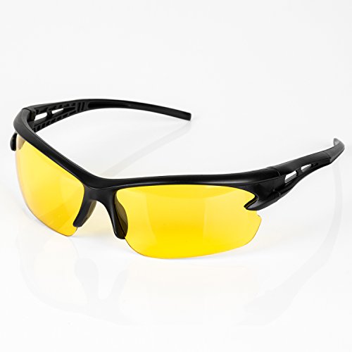 - PROTECTIVE EYEWEAR - UV protective glasses is intended to protect your eyes from damage that UV ray may cause. Safety First with UV Light. Cool looking style with yellow lenses and black frame