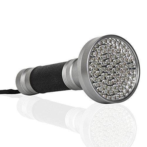 - 100 UV LEDS - Top quality ultraviolet LED bulbs, bright beam and reaches far up to 100 meters. This Handheld UV flashlight puts out more blazing powerful UV than 51 LEDs flashlight, it covers larger area without weaken the light, checking out stains in carpet/furniture more easily