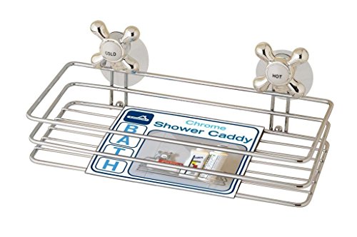 Chrome Bath Guest Towel Holder, Shower Caddy and Vanity Tray with Hot and Cold Retro Knobs all in one with Suction Cups for Mirror and Tile Placement
