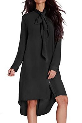 -. Title : (TAFYS) ロングシャツ レディース トップス 長袖 ブラウス ロング丈 シャツ 無地 襟 リボン 体型カバー ゆったり 大きい サイズ S M L XL