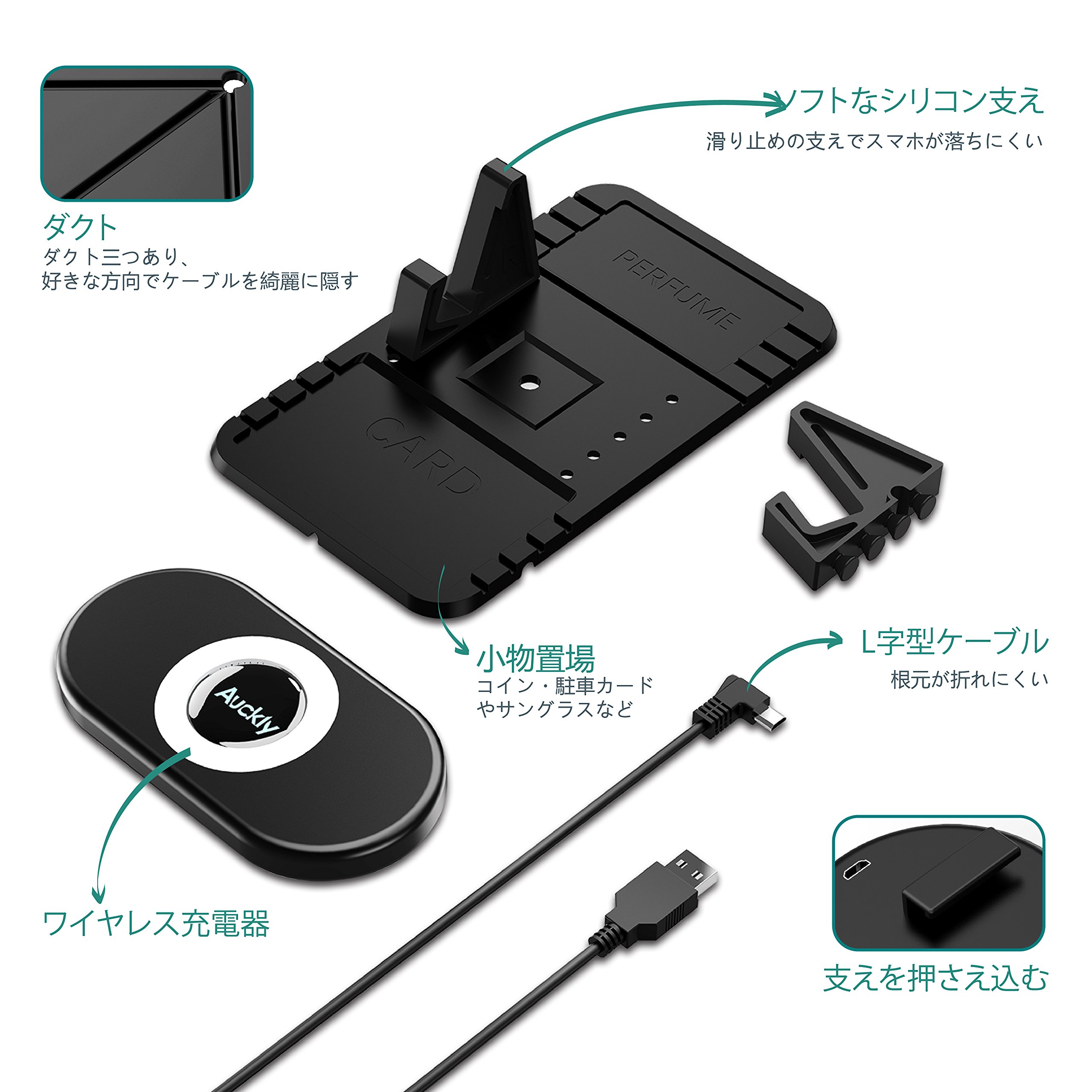 The part to be attached to the dashboard adopts silicon and can be attached to the dashboard without using double-sided tape.