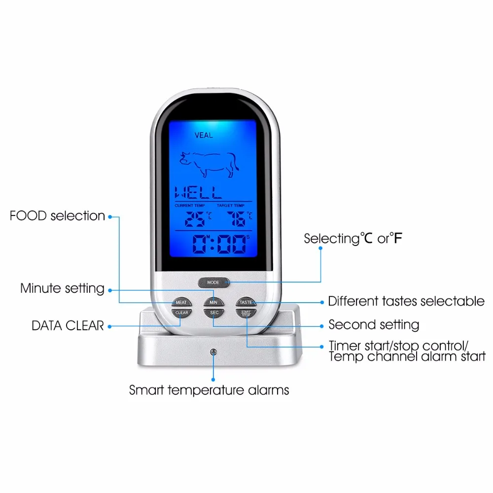 Wireless Food Cooking Thermometer LCD Barbecue Timer Digital Probe Meat Thermometer BBQ Temperature Gauge Kitchen Cooking Tools