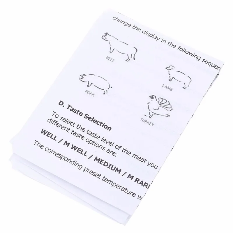 Package Contents: 1 x Meat Thermometer・ 1 x Base・ 1 x Sensor Probe・ 1 x English User Manual